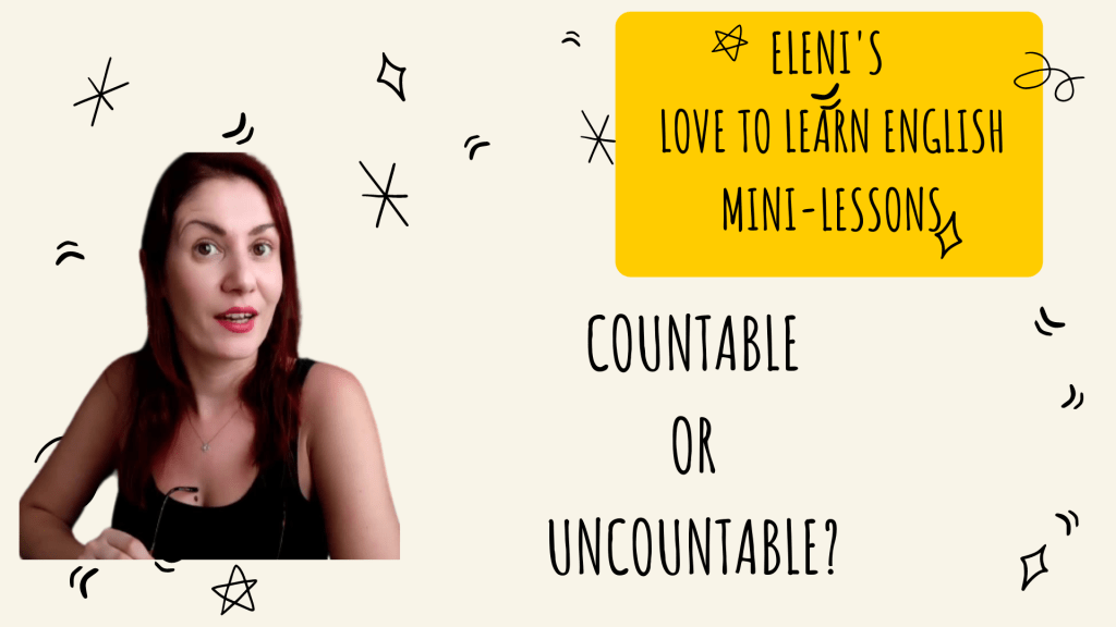 A little game on this week’s video to learn/revise countable (nouns that have plural form) and uncountable (nouns that only have singular form) nouns.