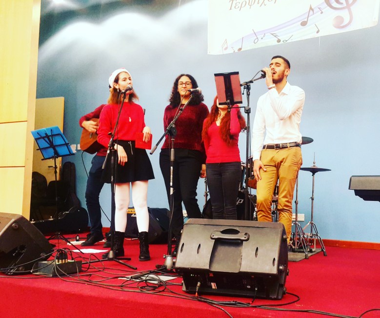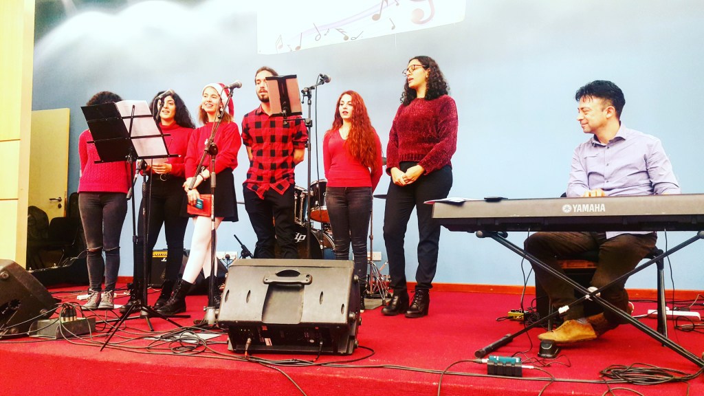 We planned to wear matching outfits, and we did (sort of). We went there early and helped set up food and drinks such as 17kg of freshly baked pastries offered on a huge discount by the chain bakeries Zorbas and a Christmas wishing tree. By the time we got there, other societies had already set up their own beautiful stands, including art made of recyclable material as well as other societies and externals from handmade games to decorating cookies workshops.