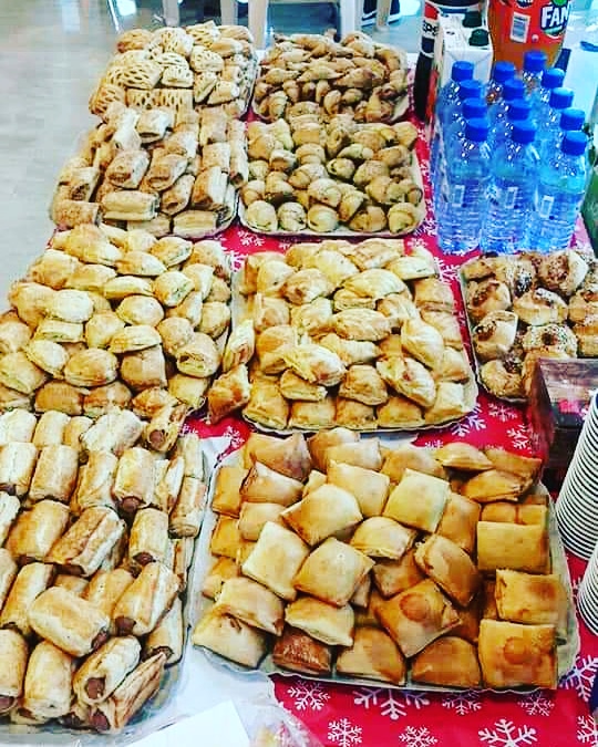 Freshly made bougatsa (Greek breakfast/snack pastry) and pita (pastries not pita bread) with savoury (spinach, cheese, chicken) and sweet fillings (the traditional and infamous sweet and full of cream), other Greek traditional pastries such as tsoureki (sweet bread) and kourou (mini pies) and desserts, many, many desserts from simple cakes to complex chocolate puddings.