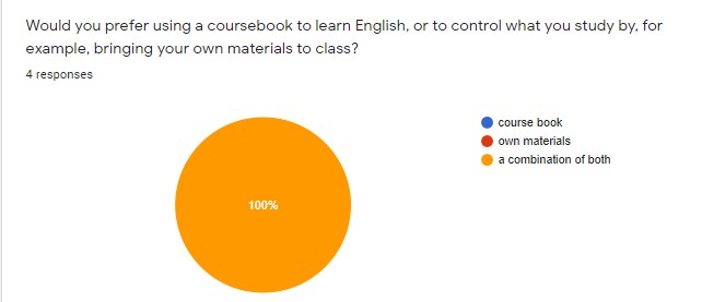 And they all enjoyed the lesson more than usual and would like lessons with combination of both their own material and coursebook.