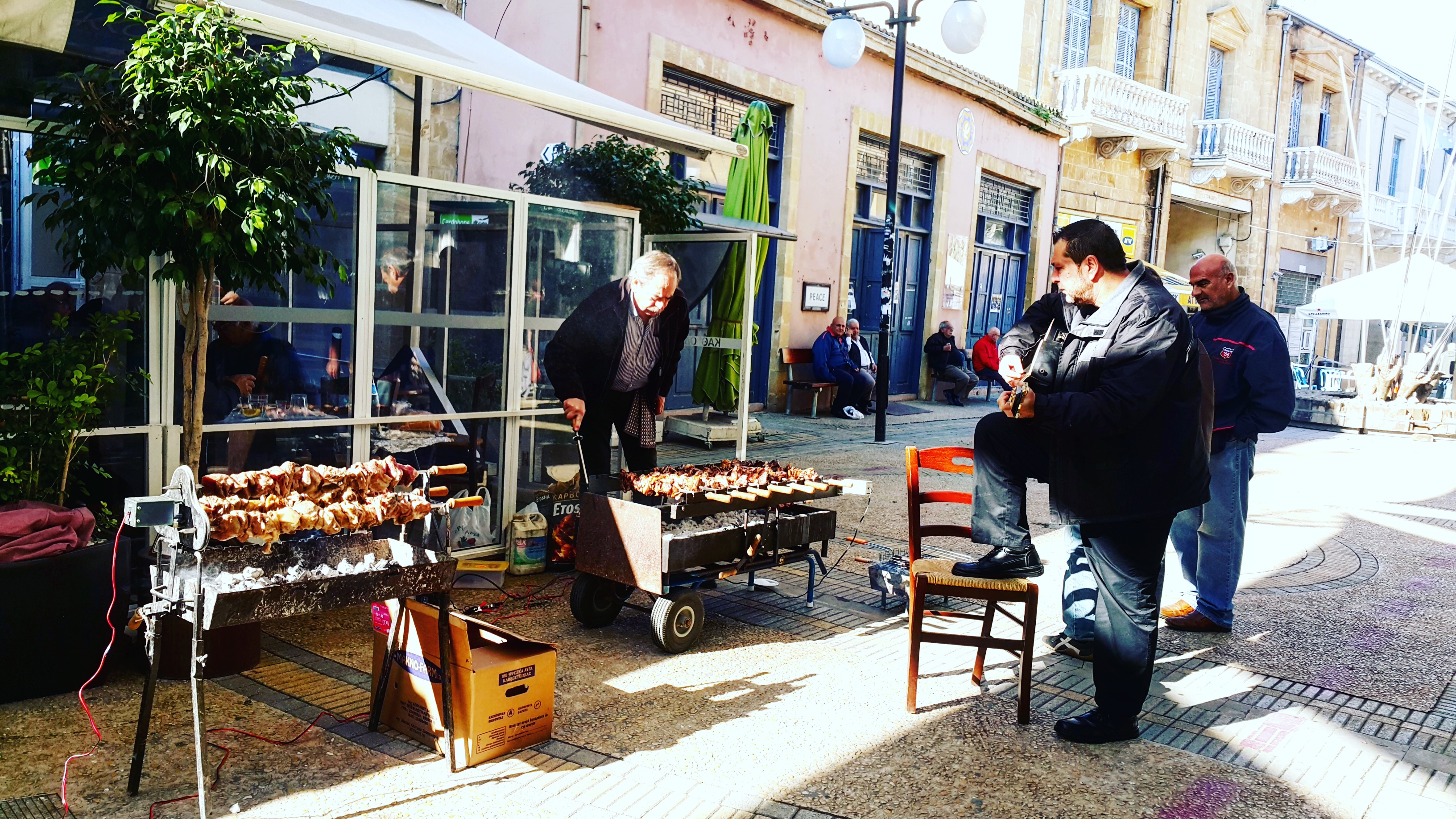 We made it there on a sunny New Year’s eve, the city centre bursting with music, traditional New Year carols (καλαντα Πρωτοχρονιας) and delicious smells as people in the shops took out their foukou (BBQ), put the meat on the large skewers and waited for their souvla (large pieces of meat cooked on a long skewer over a charcoal barbecue, a Cypriot, largest version of souvlaki), Cyprus national dish, to be grilled. God we love our food in Cyprus and any occasion to make souvla, we take.