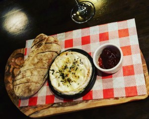 Baked Camembert with Garlic and Rosemary. Toasted Ciabatta and Chilli and Onion Chutney