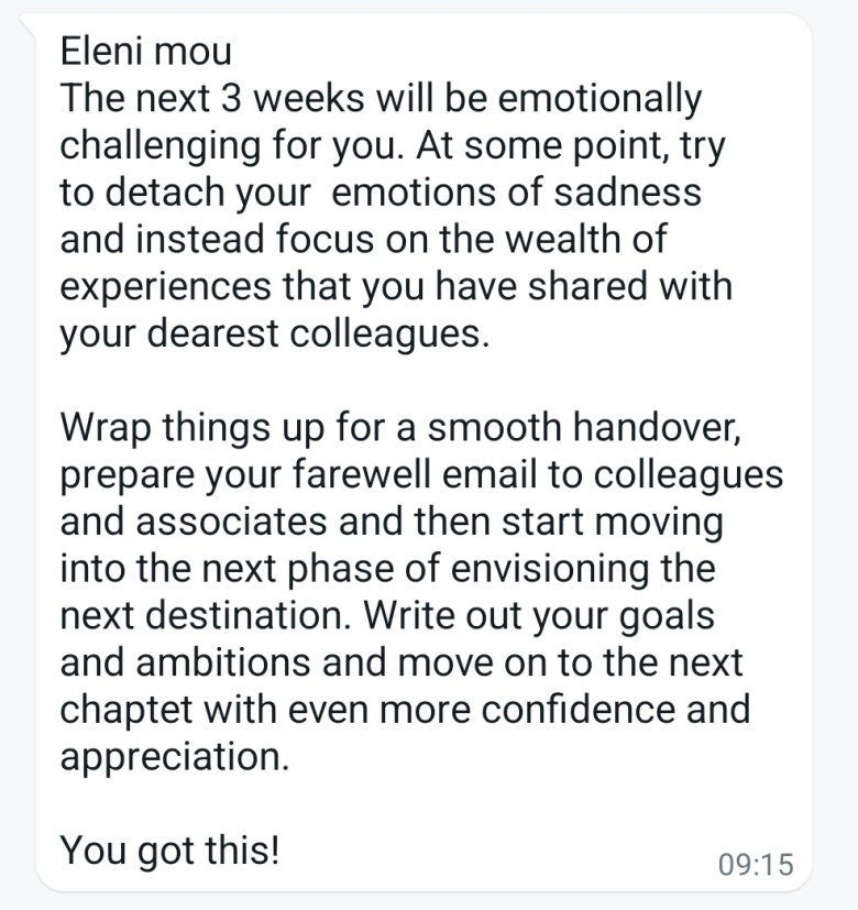 There was a lot to learn at my new job, whilst dealing with a number of personal issues (which I didn’t let it affect the quality of my work), but I managed to go through everything and I’m doing really well now. I enjoy working at a much better environment than any of my previous jobs in Cyprus and I truly believe in the amazing contribution to science and research of the Centre I work for and the whole of Cyprus Institute. My passion is still focusing on promoting and offering training on mental health at the workplace, and that’s what I ultimately want to solely focus on, but for now I’m really happy with what I do.